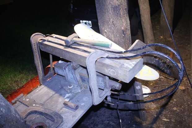 Tuvo que doblar el armazón del asiento para montar skate, martilló el marco y utilizar algunas herramientas de presión, cuando la barra es constante doblarla con mis brazos, no a fuerza es necesario, (soy un flaco de uno)