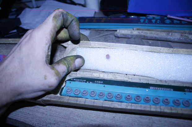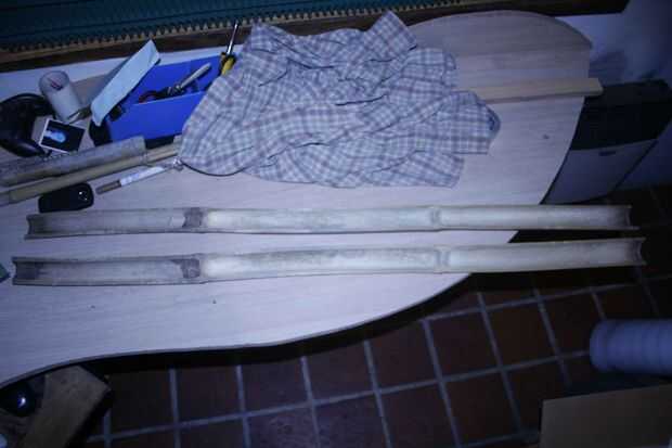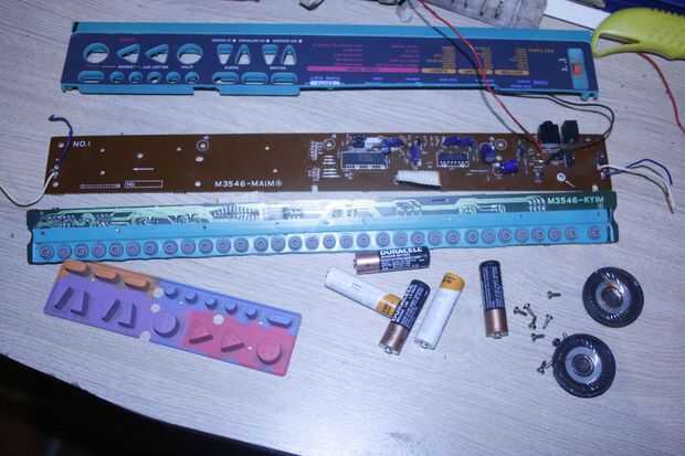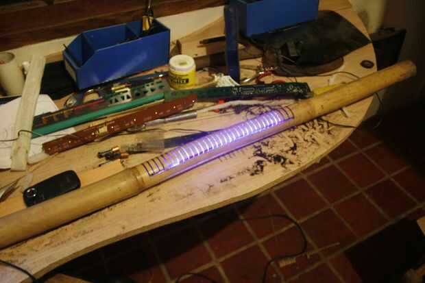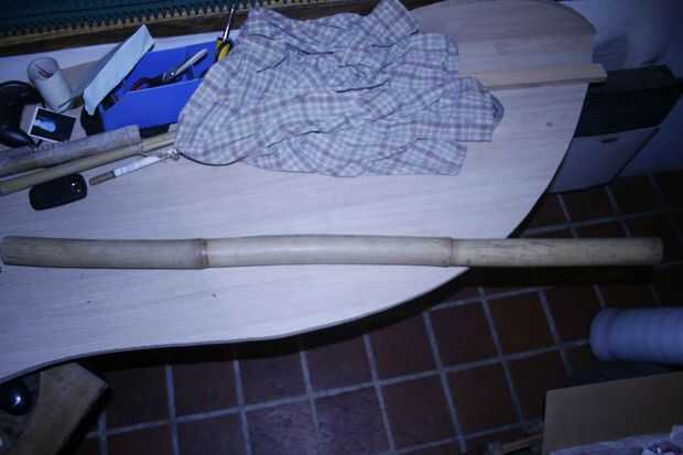 Había un viejo Casio S-35 teclado que utiliza mucho, una rotura aparte las piezas eran ideal para poner dentro de un bambú, el altavoz por arte de magia tenía el mismo diámetro del bambú dentro y el componente de circuito también tenía el tamaño de casi el ideal para él, sólo tuvo que cortar algunos pequeños para caber bien, agregado algunos led luz azul dentro. Cortado el bambú en el medio utilizando un cuchillo grande wasn´t duro sólo un corte en la parte superior y luego golpear el cuchillo hacia abajo con un martillo y woalla el bambú fue cortado, entonces utiliza una amoladora para cortar las llaves, forma pegado dentro de un paño para que la parte superior de la llave podría mover sin caer aparte. Luego utiliza la misma espuma de la silla reclinada y poner dentro a actuar como un resorte, trabajado muy bien, entonces perforado en los agujeros de la espuma para cada nota y poner un palillo plástico dentro del agujero en la espuma por lo que cuando se presiona la tecla de bambú plástico palo llega a la nota del circuito Casio S-35 que tenía ya un caucho que funcionaba bien. Luego por cable todas las cosas y todo en su lugar, por lo que esta puede ser conectado a un amplificador y se puede utilizar con baterías o alimentación 110/220.