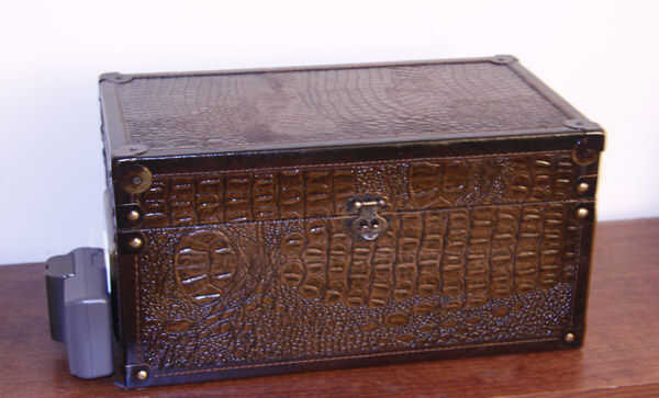 Por lo tanto, el primer paso fue la caja. Me compré éste a la venta de una tienda de artesanía para $10. Es imitación de cuero envuelto "tablero de partícula de 3/8. Todo lo demás vino de la ferretería. He incluido 2 salidas exteriores, pero 1 sería suficiente para la mayoría de las personas. Por lo tanto, si usted sólo necesita 1, comprar 1 de cada cosa en lugar de 2.