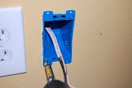 Hay un pop out dentro de cada caja para las conexiones a través de. Pop a cabo antes de que instala las cajas. Es más fácil hacerlo ahora. Fijar las cajas de la banda desde el exterior de la caja con tornillos para madera, similares a lo que se muestra en esta imagen.