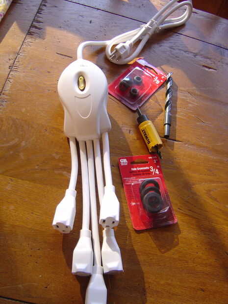 Lista de necesarios: dos tapones de hule 3/8", un ojal de caucho de 34", una potencia calamar, enchufe un reemplazo (para sustituir a la que te corte el calamar de energía), taladro, broca de corte de metales y mandril, WD40, tiritas (por si acaso). Minnow Vintage cubos están disponibles en EBay, por unos $15. (¿Has visto la nueva alma menos plásticas? Supongo que son útiles...)