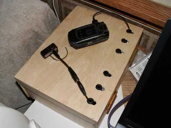 He creado una base para mi chargeables. Básicamente es una caja de madera con una tira de la energía interior y pequeños agujeros en la parte superior para dejar que las interfaces de carga a través de. Una estructura bastante simple, si tienes todas las herramientas necesarias.