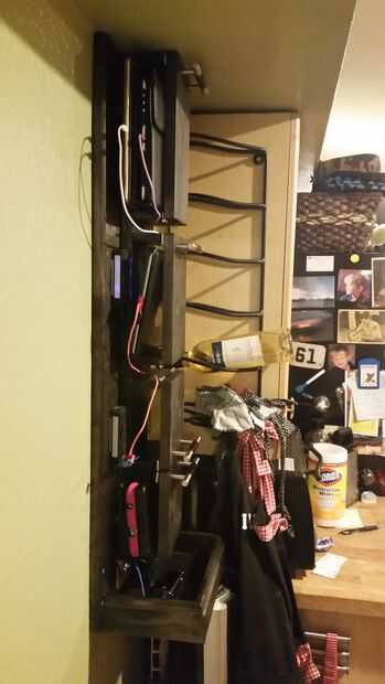 Herramienta modular super fácil estación de carga. Utiliza soportes modulares que el montaje de la batería de herramientas inalámbricas (mina son DeWalt pero algo similar se puede hacer para otras marcas). La herramienta de los soportes de montaje pu