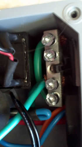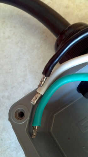 1. L6-30 tira aproximadamente 6 pulgadas de la parte posterior del aislamiento externo para exponer caliente (negro), neutro/Hot2 (blanco o rojo) y los cables de tierra (verde). Cada alambre hacia atrás y la soldadura o prensar los conectores apropiados de los alambres calientes y neutrales para su retransmisión. (opcional) Añadir un segundo conjunto de cables si es necesario para alimentar la fuente de alimentación Ardrinos.