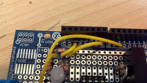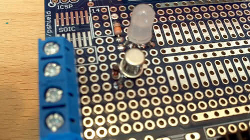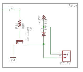 2N2222A NPN Tranzas se conecta a R11 (330 ohmios) entonces a D8 (también conecta con LED azul), GND y la salida de relé.