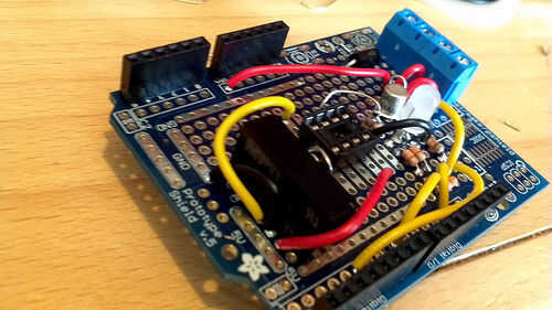 PIN 3 o el Opamp se conecta a la D10 de ARDUINO en el protoshield.