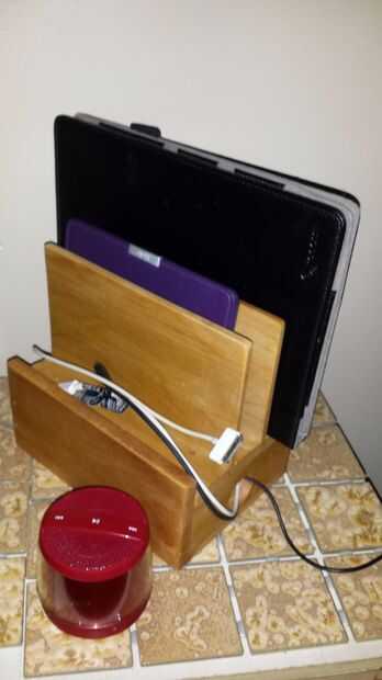 En el pasado, siempre fuimos perdiendo la verrugas de pared y cables y persiguiendo por la casa para el conjunto adecuado cargar la unidad que necesita para cargar. Miré varias opciones y eligió un concepto de estación de carga central. Compré una unidad que cuenta con 7 puertos de salida USB que pueden cargar 7 dispositivos a la vez. Ocupa sólo un espacio de salida plug-in de 110 voltios y es del tamaño de una baraja de cartas. Hay una variedad de marcas y modelos de multi puerto USB cargadores disponibles que funcionarán también en este diseño. Quería sendas estaciones de carga para adaptarse mejor a las necesidades de mi familia así que compré un par de Bolse® 60W / 12 Amp 7-Puerto rápido USB pared de carga escritorio las estaciones de carga y construido dos cajas de madera muy simples una tapa para mantener la casa y dispositivos de la unidad de carga USB.