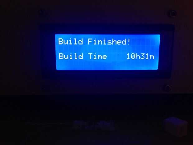 Comencé en la mañana y verificar en él durante todo el día. Tengo que ejecutar mi extrusora caliente para obtener buenas impresiones con filamento de pla HatchBox.