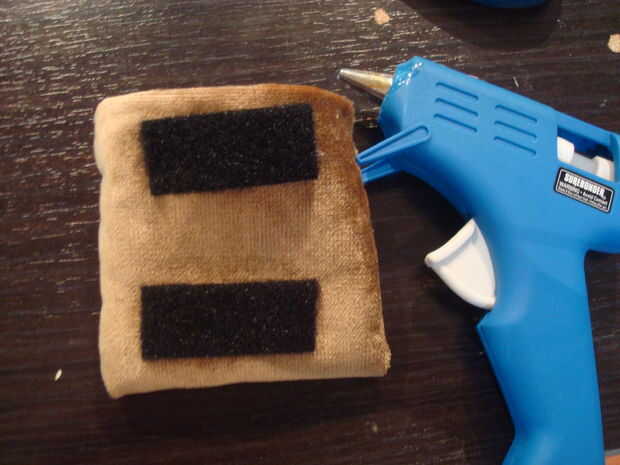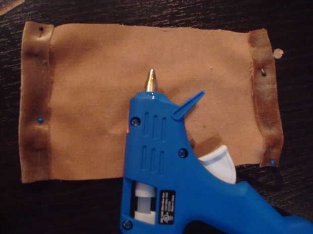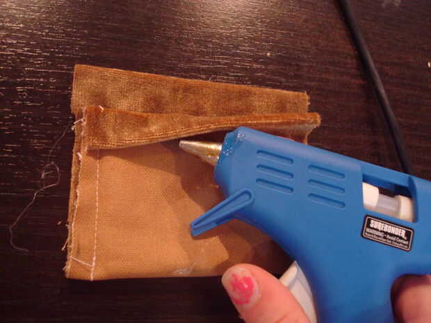 • Plegar los extremos más cortos de la tela 1/2" y pegar hacia abajo con la pistola de pegamento caliente
