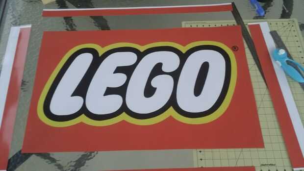 • Impreso un logotipo de Lego que saqué de Google imágenes utilizando una impresora de gran formato y ha laminado en mi tienda de suministros de oficina local.