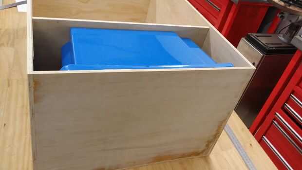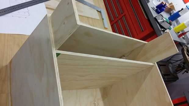 • Utilice un trozo de madera de desecho para hacer dos tiras ligeramente superiores a sus bandejas de piezas para asegurar los estantes son paralelos de adelante hacia atrás. Yo sólo se permite 1-2mm mayor que la bandeja de las piezas para que las piezas de Lego no mezclan mientras rueda la caja.