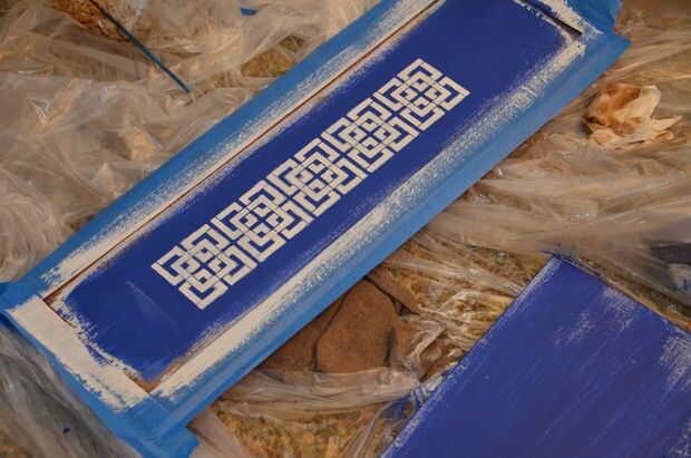 Después de secado colocar la plantilla en el panel con cinta hacia abajo y blanco decidido es lo mejor para la plantilla.
