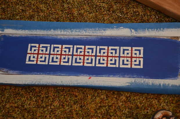 Así vieron el final de la plantilla y todavía no estaba contento, mejor pero no feliz. Decidido a la cinta de la plantilla y ejecute una franja roja abajo de la media y para hacer el Saint George Cross.