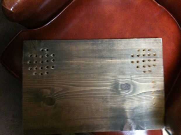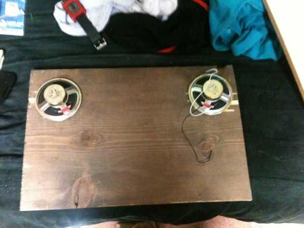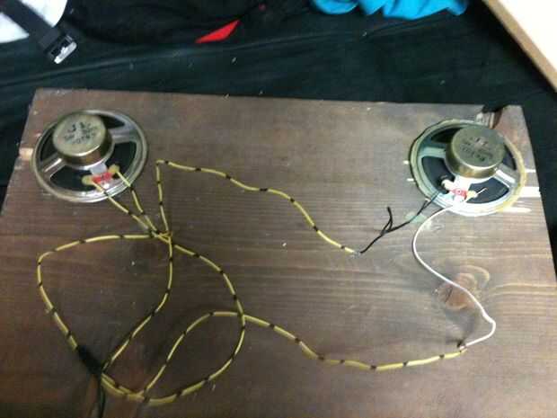 Que caliente pegado a los altavoces en el lugar y luego por cable les todos a un jack de 3,5 mm tenía puesta alrededor. mi pieza superior tenía una grieta en él por lo que me a alimentado el cable a través de la grieta por lo que podría conectar su ipod.