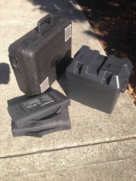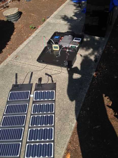 Estación de energía solar portable o de emergencia. Estadísticas: 120W (95? max hasta ahora), 12V 80Ah AGM batería solar, MPPT controlador de carga solar, inversor de 400W (utiliza 0.8 A cuando en), 3 ventiladores de refrigeración (en/hacia fuera del conducto y utiliza 0,2 A cuando, el botón activado), caso de 6,2 kg/14 lb - pesado con todo pero los paneles y la batería.