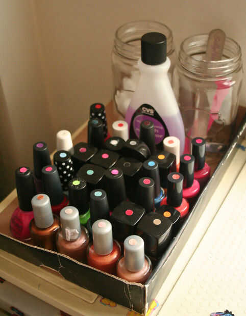 Ahora, está listo para mostrar en la mesa o en cualquier lugar que usted quiere disfrutar de un muy necesario mani o pedi! Me encanta todos los brillantes colores de los esmaltes de uñas y no dude en utilizar sus propias marcas de fábrica!