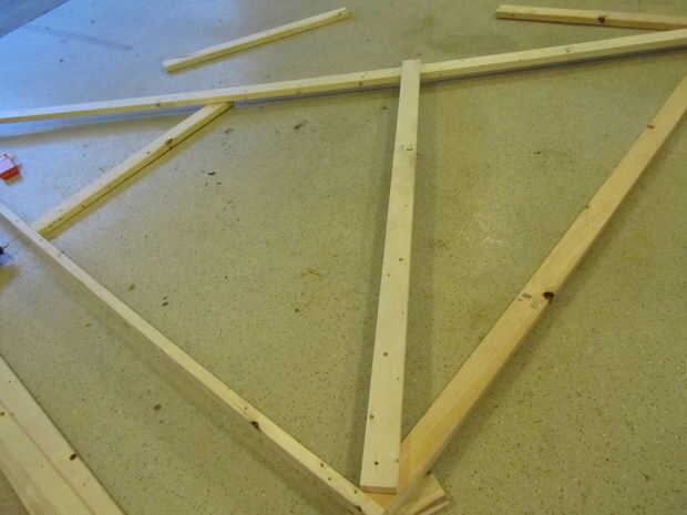 Ahora que tienes todos el comienzo de corte madera juntando el triángulo exterior de la estructura y recuerda perforar agujeros para los tornillos o de lo contrario podría dividir la madera y para cada articulación uso 3-5 tornillos no quieren esta cayendo a pedazos.