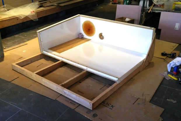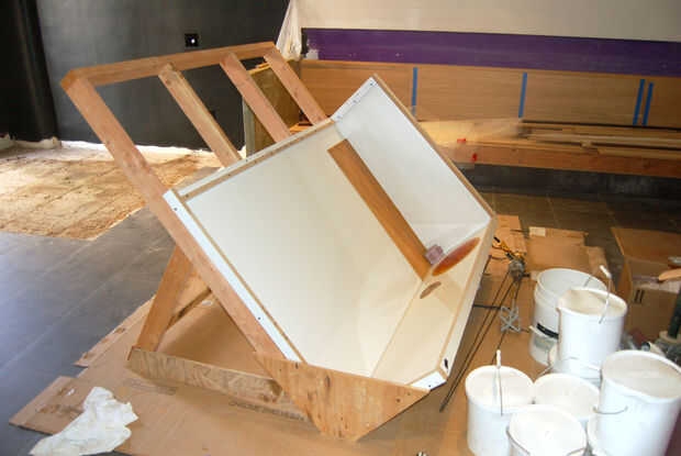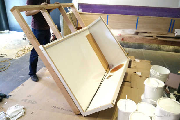 Una simple plantilla de 2x4s se utiliza para ayudar a rotar la forma como se embala cada pared individual.