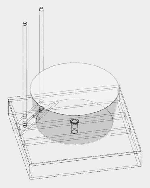 El diseño es bastante simple para este proyecto. Consiste en una caja de madera con un fondo abierto (32 1/2 "X 32 1/2" X 5 1/4 ") que está cubierto con placas de redwood. Hay una tina en el centro, y el aparato se coloca en un ángulo en una de las esquinas.