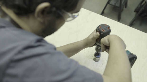 Con el cuadro construido, he medido y marcados los centros de agujero en la pieza superior. Antes de perforar estos agujeros, es importante comprobar las dimensiones de sus piezas (el drenaje de filtro y los tubos de la lámpara). He utilizado sierras para agujeros-con éstos, es fácil llegar al ras de los agujeros con un taladro de mano en lugar de bits de paleta.