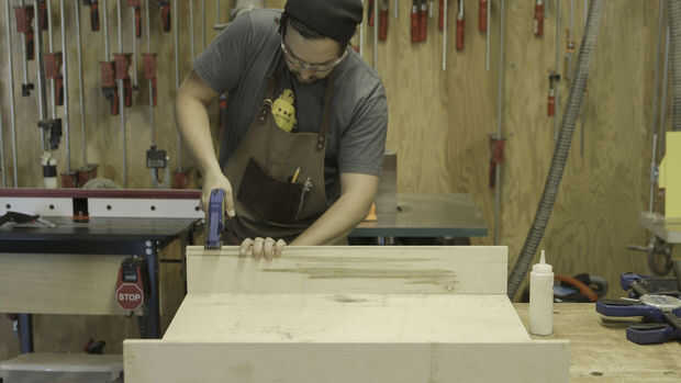 Primero, corté las piezas de madera como se muestra en el PDF. Con todas las piezas de madera contrachapada, pegados, afianzado con abrazadera y clavar los paneles juntos. Una vez en los clavos, realmente no hay necesidad para mantener las pinzas en.
