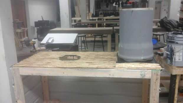 • luego atamos dos piezas de 1 x 4 en el interior del agujero.