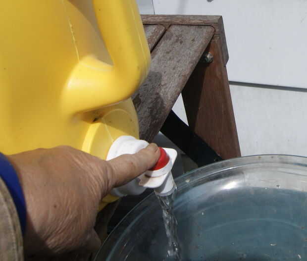 El contenedor se puede fijar en cualquier cosa lo suficientemente fuerte como para soportar su peso lleno con la espiga sobre un borde. Conjunto sumidero bajo la espita. Su instalación puede ser tan simple como un muñón con el lavabo en el suelo o una mesa de picnic con el lavabo en el asiento. Cuando mi barbacoa australiana dio para arriba el fantasma, he quitado el programa de instalación de quemador grill y construyó un estante a través de los soportes ahora vacía. Se convirtió en mi banco de trabajo de la huerta y configurar la estación de lavado en un extremo de la misma. En el jardín principal, tengo un banco macetas junto a un lavadero en el que puse el contenedor; También tengo un cubo debajo del orificio de desagüe de la bañera.