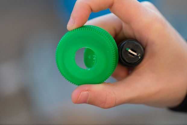 Si usted está haciendo una lavado estación reutilizando una botella de plástico luego de la mano con cuidado hacer un agujero en la botella donde el agujero será accesible tanto dentro como fuera del contenedor. Te recomendamos que hagas el agujero en la tapa de una botella. Usar el grifo de SaveAqua para hacer esto.