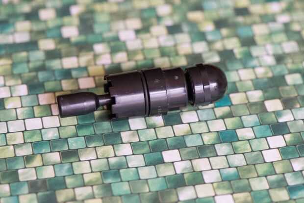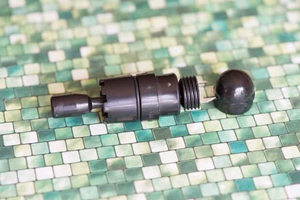 -usted quiere asegurarse de que el grifo de SaveAqua está en la posición cerrada. Desenroscar la tapa para revelar el cuchillo incorporado.