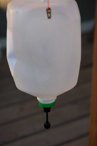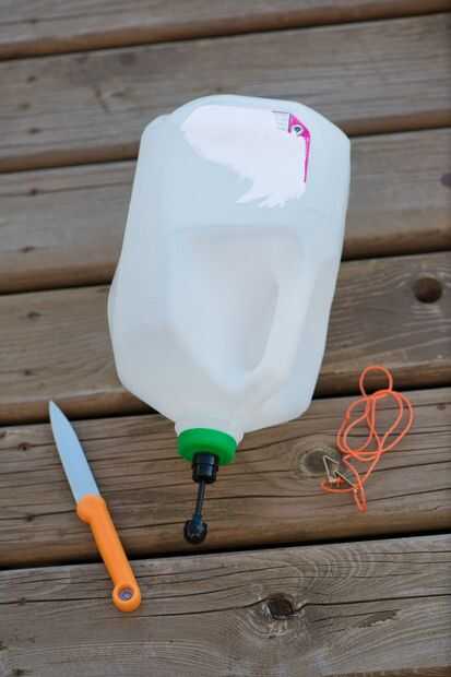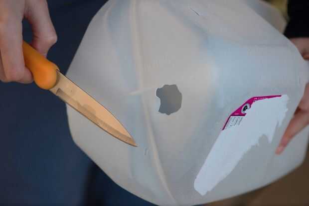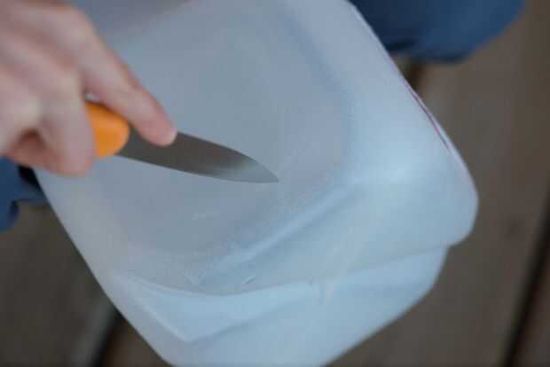Usando un cuchillo corta una abertura en cada lado del envase. Usted quiere ser capaz de suspender el recipiente con agua en ella, así que asegúrese de que los agujeros no demasiado baja o demasiado alta. Ahora usted puede colgar su estación de lavarse las manos! Por último todos hacer otro agujero en la parte superior del recipiente para ventilación, de lo contrario que se creará un vacío como agua es, detener el flujo de agua.