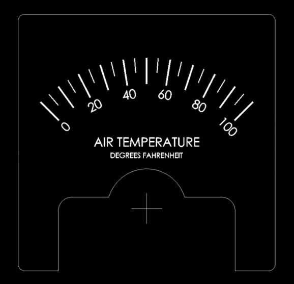 He creado caras personalizadas de los metros del panel uso de DraftSight, un programa gratuito de CAD. Puedes descargar mi archivo en el repositorio de GitHub del proyecto. Deberá ajustar las caras para adaptarse a sus medidores de panel y sus condiciones climáticas locales.