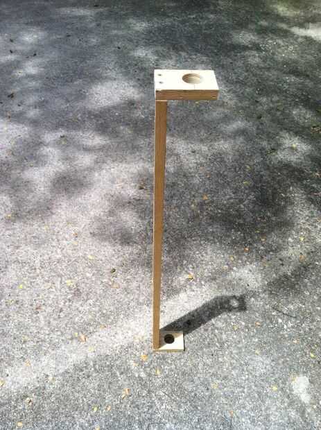 corté mi madera a 3 pies para la parte posterior del marco en U y 4 pulgadas a cada lado de una pequeña habitación. Yo entonces atornilladas les. Después de eso, perforé un agujero de 1 pulgada en los lados de la varilla de pasador para el papel en lugar del agujero.