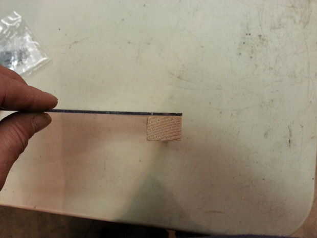 luego tomar su 1 x 1 x 8 pieza y poner unas gotas de pegamento caliente en ella para sostenerla en lugar la de usted lexan
