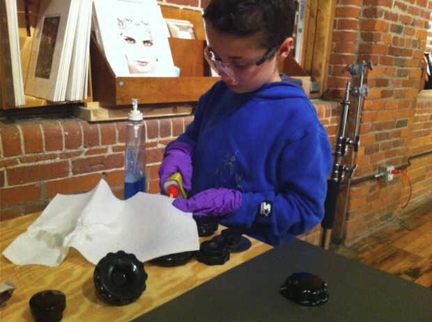 El anillo alrededor de la pantalla del radar se hizo cortando el interior de la tapa de cubo de 5 galones y pintura negra. Para la sesión de fotos, puse varias capas de material de difusión, además de un par de geles verdes significó para el equilibrio de luces estroboscópicas a luces fluorescentes.