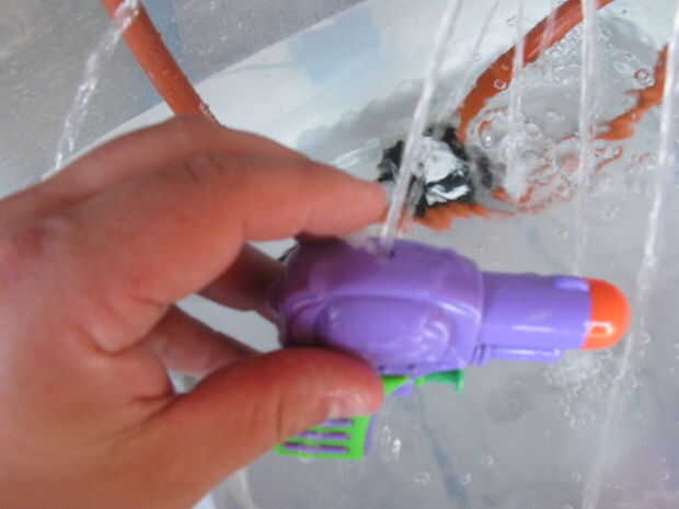 Now for the fun. De la mano a las pistolas de chorro y avisan a sus hijos a encender la manguera ellos si consiguen tanto como una gota en usted.