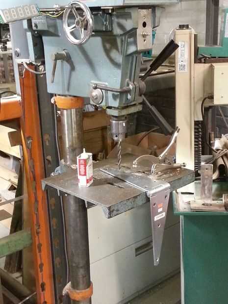 Anteriormente en el proceso, burló-para arriba el diseño en mi silla pegado-para arriba poniendo hacia fuera como yo imaginaba a que las piezas se sentarían, con bisagras en los lados opuestos. En este punto, había simplificado mi diseño de bisagras en los lados opuestos a dos bisagras paralelo. Medidos y marcados los puntos de Cruz y taladro presiona cada bisagra. Tierra de dos surcos en la bisagra posterior para permitir que los brazos U mentir perfectamente junto a la bisagra. Las bisagras actúan como placas de separador de carga para las abrazaderas de U. Metal de presionar del taladro es un proceso iterativo donde usted se desplaza a través de bits de 2 o 3 (o más) a partir de pequeños y de trabajo hacia su tamaño deseado. Este proceso también le permite comprobar la alineación de la primera iteración antes de que el agujero es muy grande. Asegúrese de utilizar el fluido de corte! Esto facilitará la presión sobre la broca. También asegurar la pieza y asegurar fuertemente la broca. Cualquier bamboleo aquí voluntad ser malo para su proyecto y sus herramientas y puede suponer un riesgo para usted. Metal prensado taladro representa más riesgo que los de madera. Es un material más difícil de pasar y la patada cuando un trabajo sale mal es peor. ¡Ten cuidado! Usar los ojos y oídos y un peto de trabajo. Pedir ayuda o buscar en línea si no está seguro sobre cómo usar correctamente el taladro. Con relativa facilidad se puede crear una situación negativa. Dicho con un poco de conocimiento este paso es un pedazo de pastel, sobre todo si tus marcas son en.