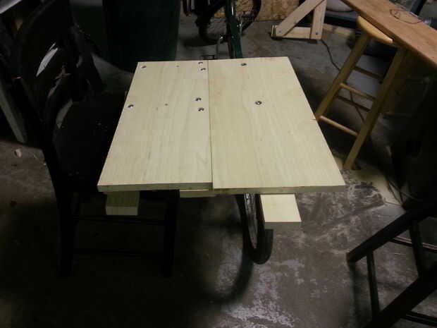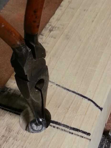 He creado el tablón separador para apoyar la superficie utilizando las mismas técnicas mencionadas en la sección de trabajo de la madera. Os dejo todas las piezas largas a menos que se ponga en cortocircuito es necesario para tener algún factor fudge si algo necesita ser modificado. He usado cortes de mortajas (_(joinery)) de http://en.wikipedia.org/wiki/Dado para permitir que el tablón separador poner nivel sobre las bisagras y soportes en L. Yo hundido las tuercas en la Junta espaciador para sacar el perno para la superficie del plano superior. También usé alicates de punta para conseguir la rosca para coger los tornillos muy apretados (ver imagen). Luego he probado para asegurarse de que la alineación de la superficie de trabajo articulado y la superficie de la parrilla fueron al ras. Hice algunos lijado menores para hacer la descarga perfecta. Superficies planas plantean algunos desafíos interesantes. Si presta atención a los detalles, las superficies se alinearán sin problemas :D