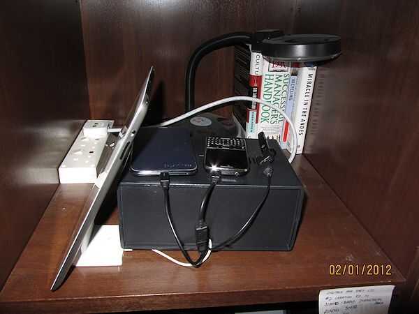 Ahora tápelo y casi listo... Aquí está una foto de él en acción. Carga mis 2 móviles, un auricular bluetooth y un IPAD2.