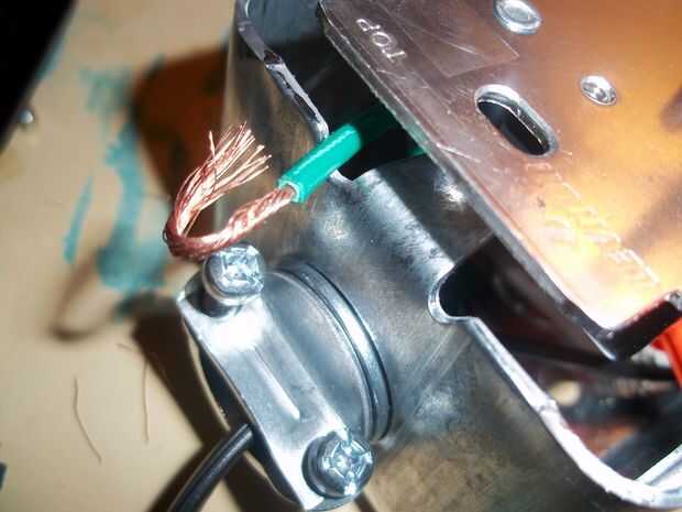 El verde (GND) del regulador debajo del tornillo que va a la caja de la utilidad y el atenuador y apriétela hacia abajo.