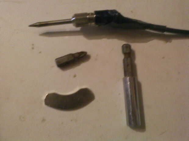 Ahora que el cableado fue modificado en el diseño que necesitaba, luego encajan las piezas, asegurado con epoxi y luego los envuelto con cinta aislante para evitar que seguro o prevenir cortos circuitos soldadura fuera de control. Hice un soporte para el soldador con el sostenedor del pedacito de destornillador eléctrico. Adjunto el sostenedor del pedacito en un ángulo y luego ajustaron el sostenedor de la lámpara E-10 a la cavidad de la broca de 8 mm pelado, así que eso es. También puse el imán de disco duro junto al sostén para reforzar el control sobre el pedacito (ahora soldador!) y también para crear una plataforma magnética para sostener cualquier pequeñas piezas de metal. Al final produce un soporte para el soldador que evitará que el circuito/batería/yo derretir cuando está en funcionamiento.