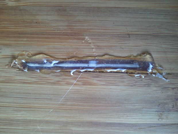 4) final curva de suspensión de la longitud de grove y pegamento en su lugar
