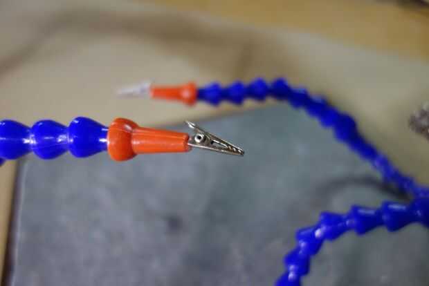 Clips de aligator - https://www.amazon.com/Silver-Insulated-Alligator...