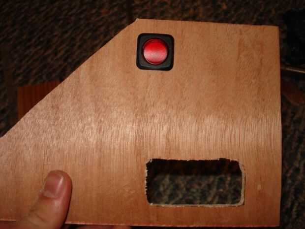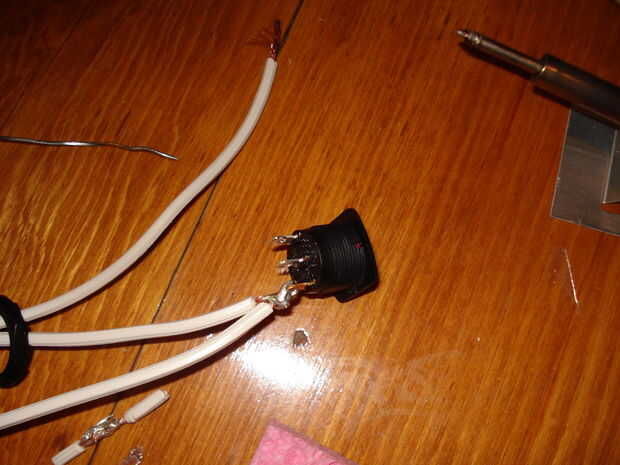 Quería electricidad desde la pared para ir directamente a la estación mediante un cable de extensión tipo de interior. Pasa el cable en la estación y su enchufe mentiría al ras con la cara de madera. El soldador está conectado aquí. Posición del interruptor determina si el cable de extensión es caliente o no (y por lo tanto cuando el soldador está encendido).