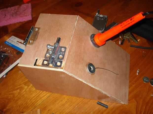 El cierre fue un poco más complejo que la bisagra y se debe hacer primero. Las dos partes (iré con "masculino" y "mujer" aquí) no pueden ser en la tapa o el mecanismo simplemente no funciona... Supongo que es montaje obvio un trozo de madera al lado de la caja de tal manera que la madera quede al ras con la tapa. Una ranura del mismo tamaño que este desecho debe recortarse la tapa. Como se puede ver en las fotos, corte mi ranura un poco a long...but esto realmente funcionó en mi favor (a ser no explicado más adelante, te preocupes). Encolar la parte hembra hacia arriba de la madera de desecho y luego fije la pieza masculina a la tapa.