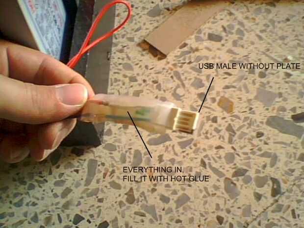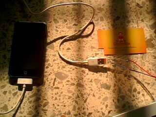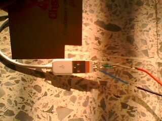 Luego me di cuenta que no carga el ipod touch, como una casualidad encontré que necesitaba hacer tierra con la placa del usb de ipod, así que tomó un cable de la planta de la alimentación y pegué allí para hacer tierra. después de todo se hace aplica pegamento caliente.