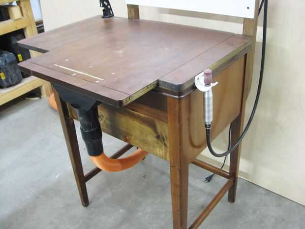 Recientemente tomó de talla de madera de poder y se dio cuenta rápidamente que necesitaba una estación de la todo-en-uno para facilitar las cosas. Esto es lo que se me ocurrió: una potencia talla estación construida de una vieja mesa de costura.