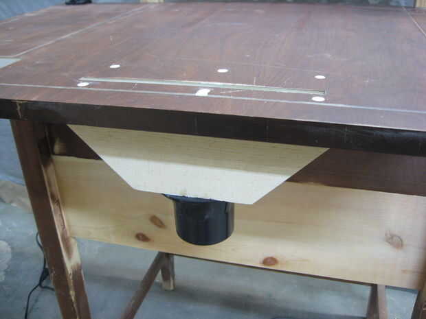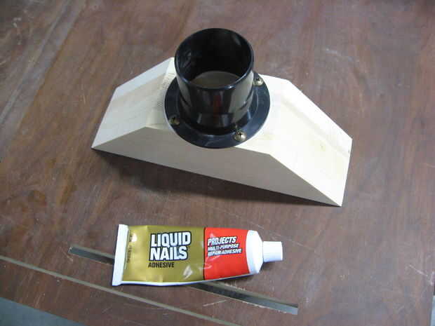 Por debajo del orificio para polvo, necesitaba algún tipo de área hermética para transferir el polvo a un adaptador de plástico que encaja mi manguera de colección de polvo. El adaptador de plástico fue comprado en una tienda de carpintería por unos cuantos dólares.