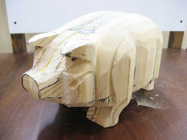 Aquí está mi primer proyecto de talla real: una alcancía de madera. Tengo un completo instructivo que cubre el proyecto completo aquí.