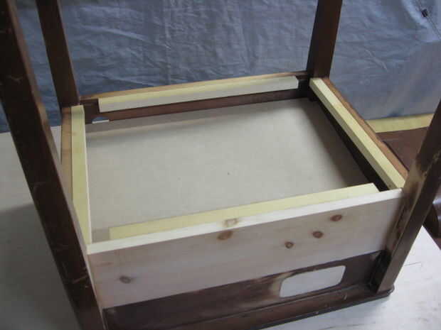 La pieza de fondo plano que se coloca dentro de la cavidad antes de colocar sus tacos de apoyo al caso, como se muestra en la foto 3. Luego con las abrazaderas en su lugar, la pieza inferior fue atornillada a la bita de la superestructura a través de la abertura en la parte superior de la tabla.