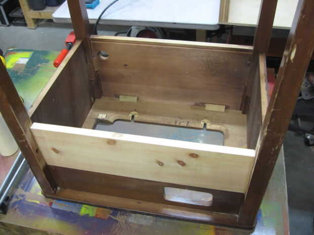 Con algunos restos de madera, cerrado en la parte inferior de la tabla para crear un área de almacenamiento. Abrazaderas, pegamento, tornillos de bolsillo, regulares tornillos y clavos se utilizaron para este paso.